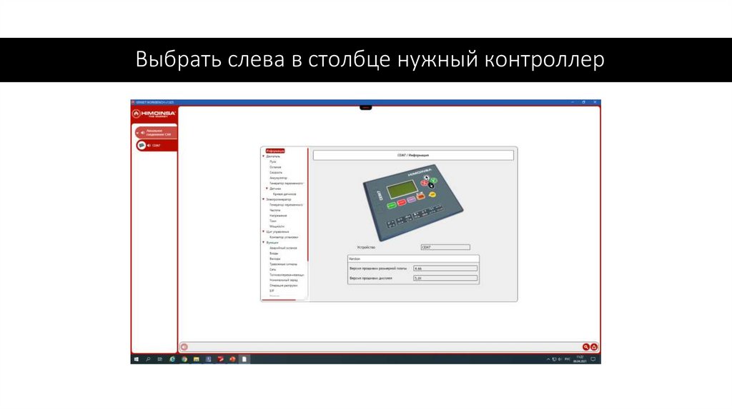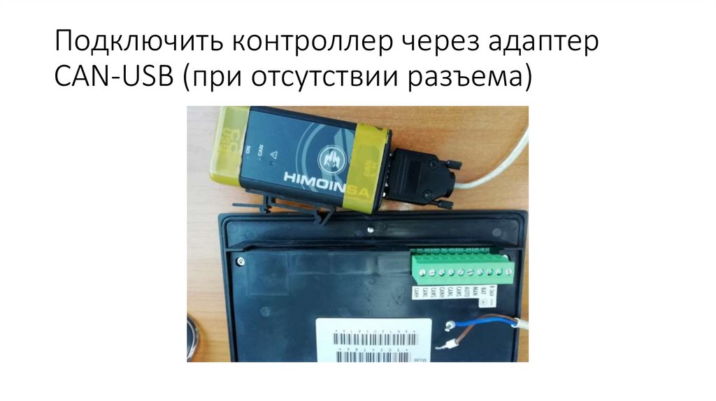Подключить контроллер через адаптерCAN-USB (при отсутствии разъема)