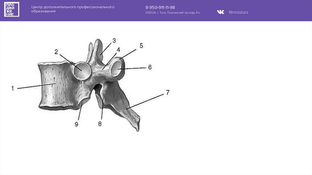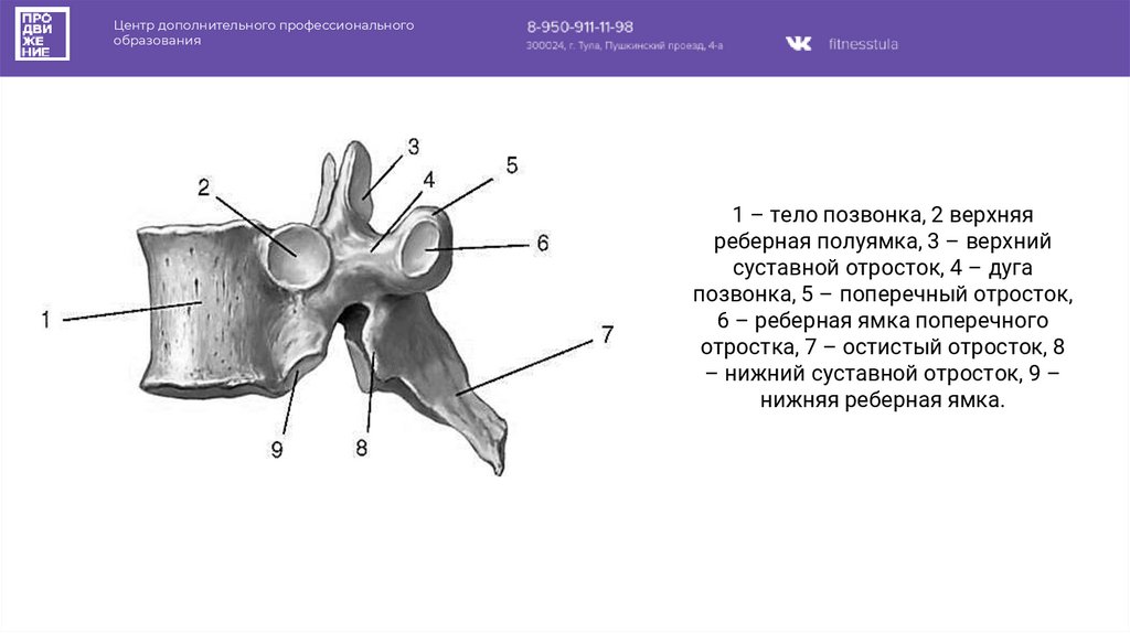 отверстие, 5 – дугоотростчатый сустав, 6 – тело