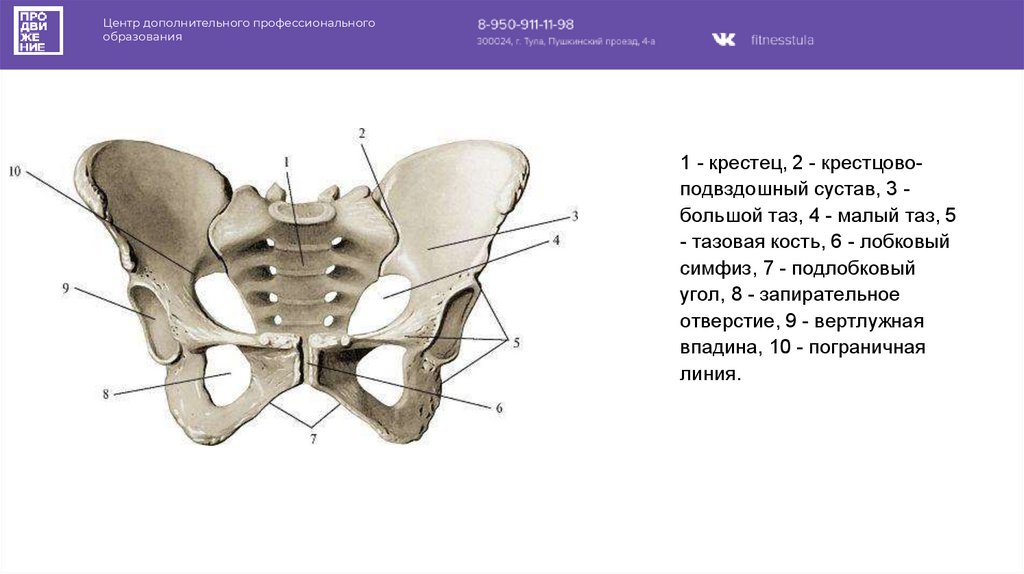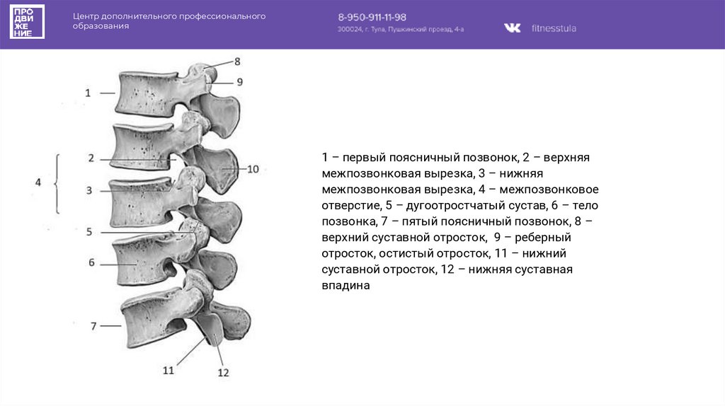 позвонка, 7 – пятый поясничный позвонок, 8 –