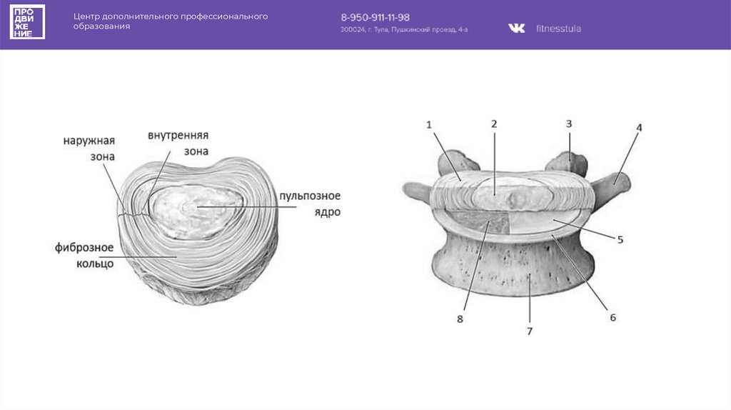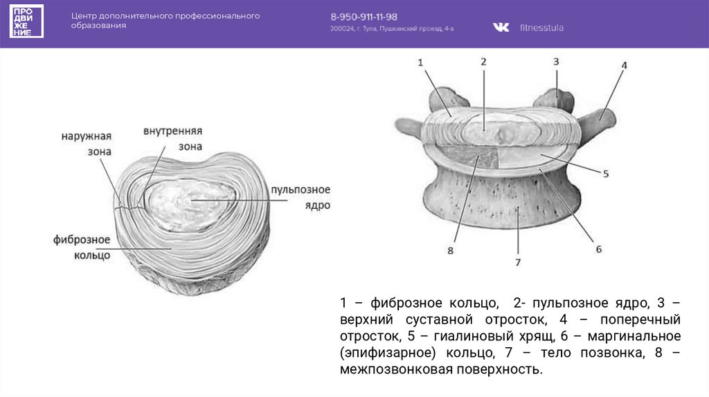 1 – фиброзное кольцо, 2- пульпозное ядро, 3 –