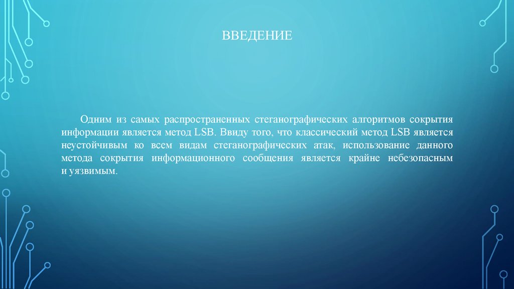 ВВЕДЕНИЕОдним из самых распространенных стеганографических алгоритмов сокрытия