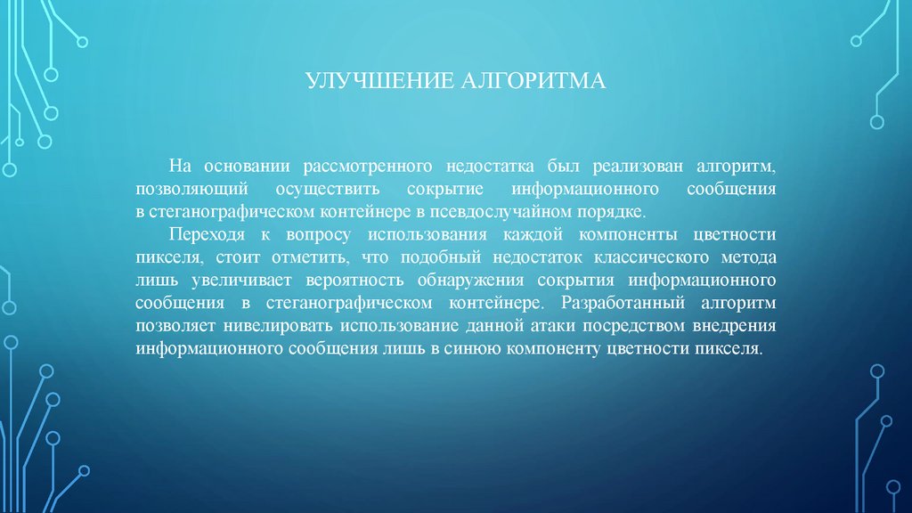 УЛУЧШЕНИЕ АЛГОРИТМАНа основании рассмотренного недостатка был реализован алгоритм,