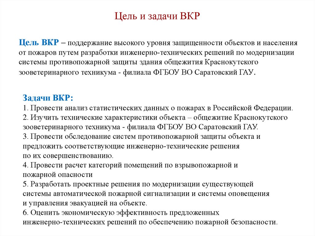 Цель и задачи ВКРЦель ВКР – поддержание высокого уровня защищенности объектов и населения