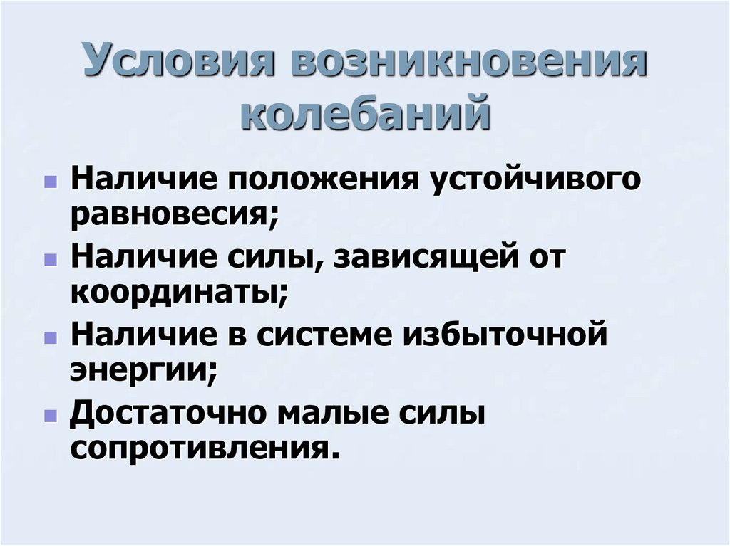 Условия возникновенияколебаний