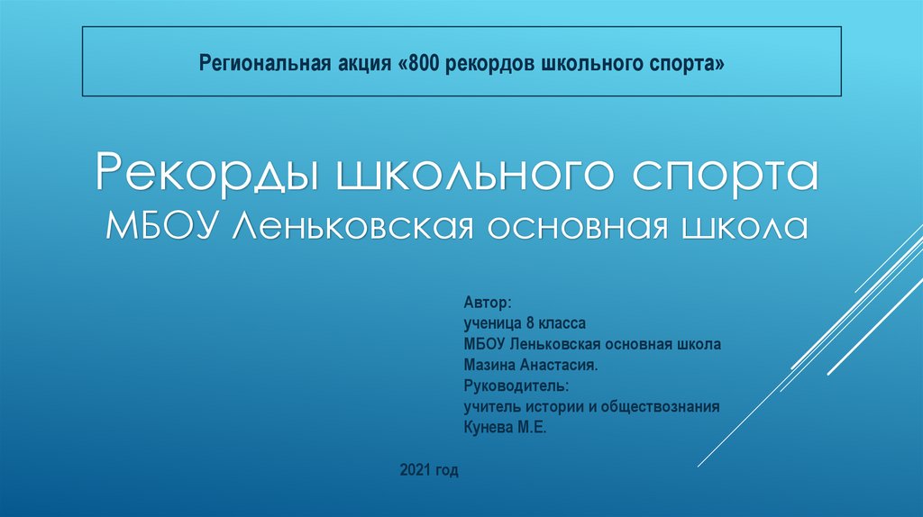 Рекорды школьного спорта МБОУ Леньковская основная школа