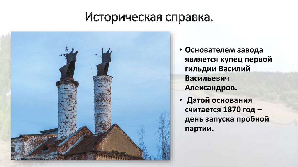Историческая справка.• Основателем завода