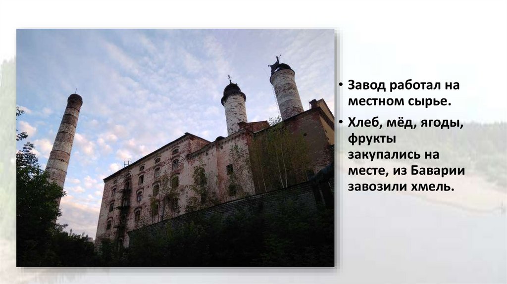 • Завод работал наместном сырье.