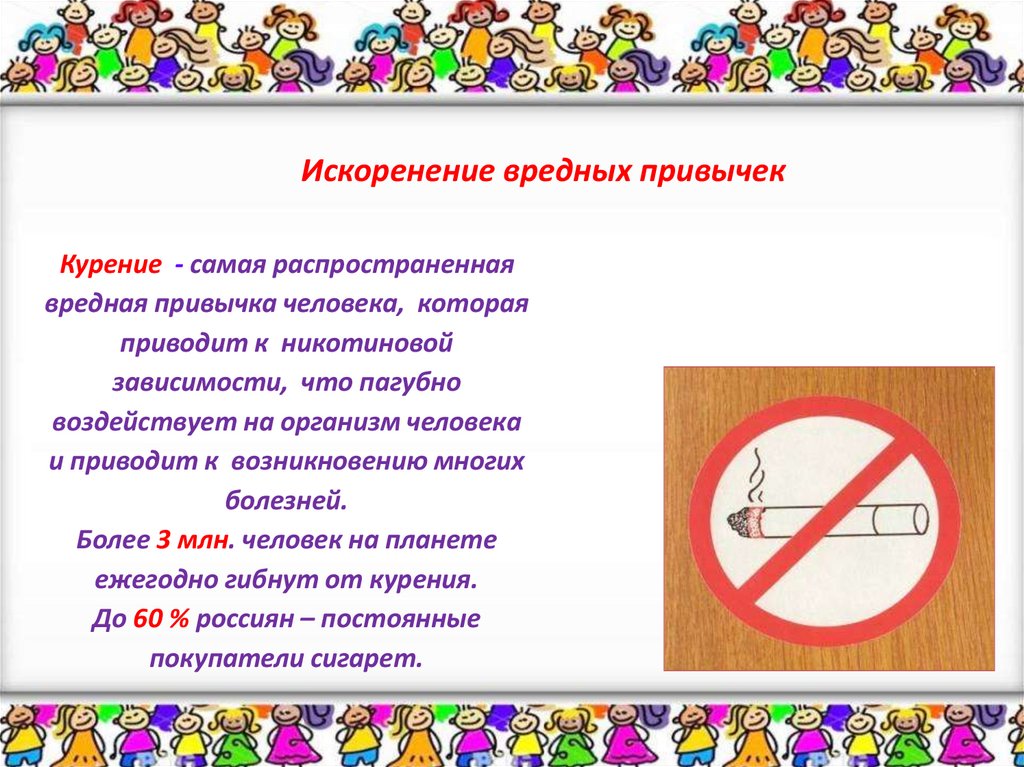 Искоренение вредных привычекКурение - самая распространенная