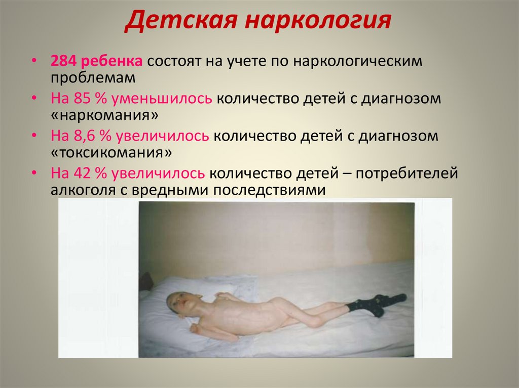 Детская наркология• 284 ребенка состоят на учете по наркологическим