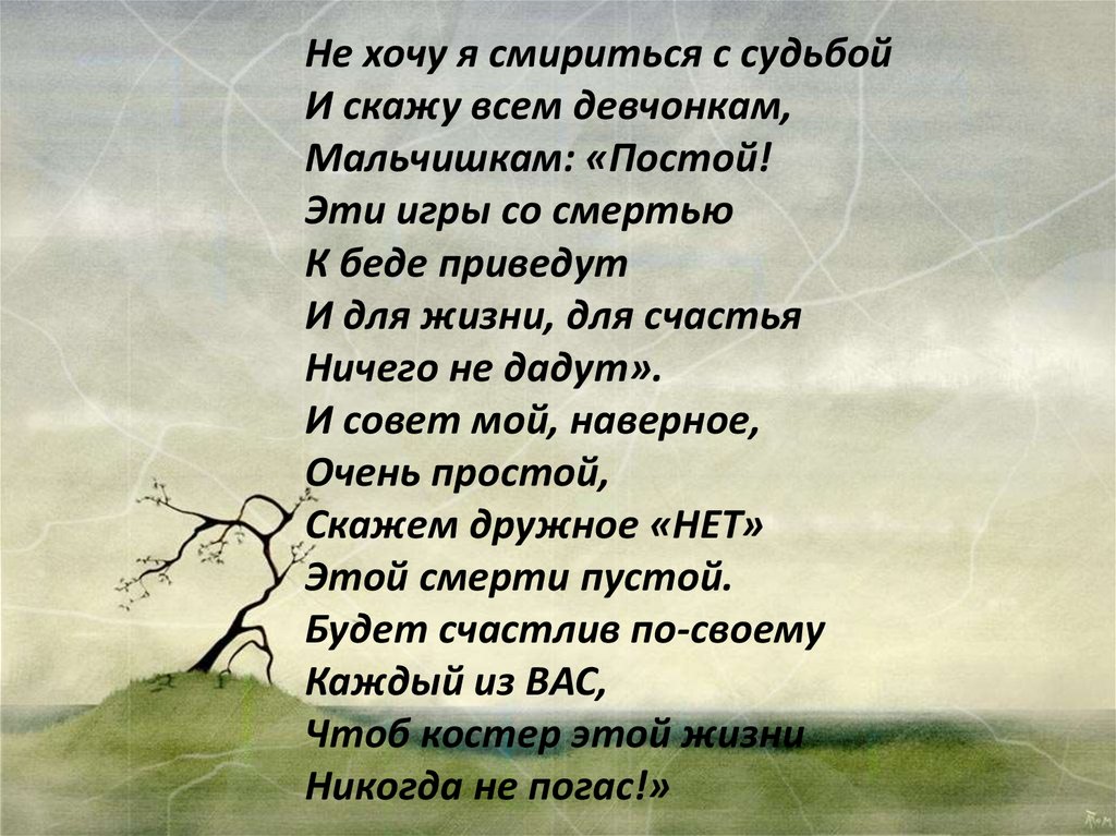 Не хочу я смириться с судьбойИ скажу всем девчонкам,