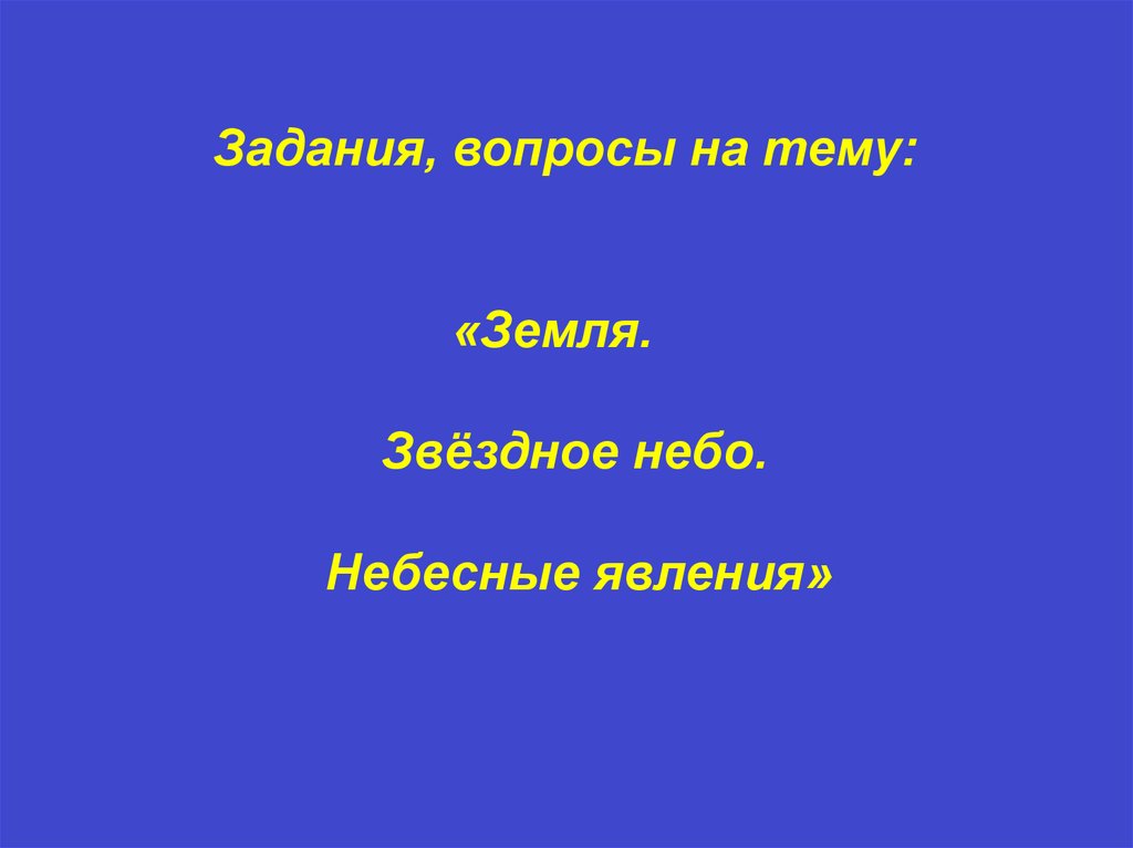 Земля. Звёздное небо. Небесные явления. Задания и вопросы