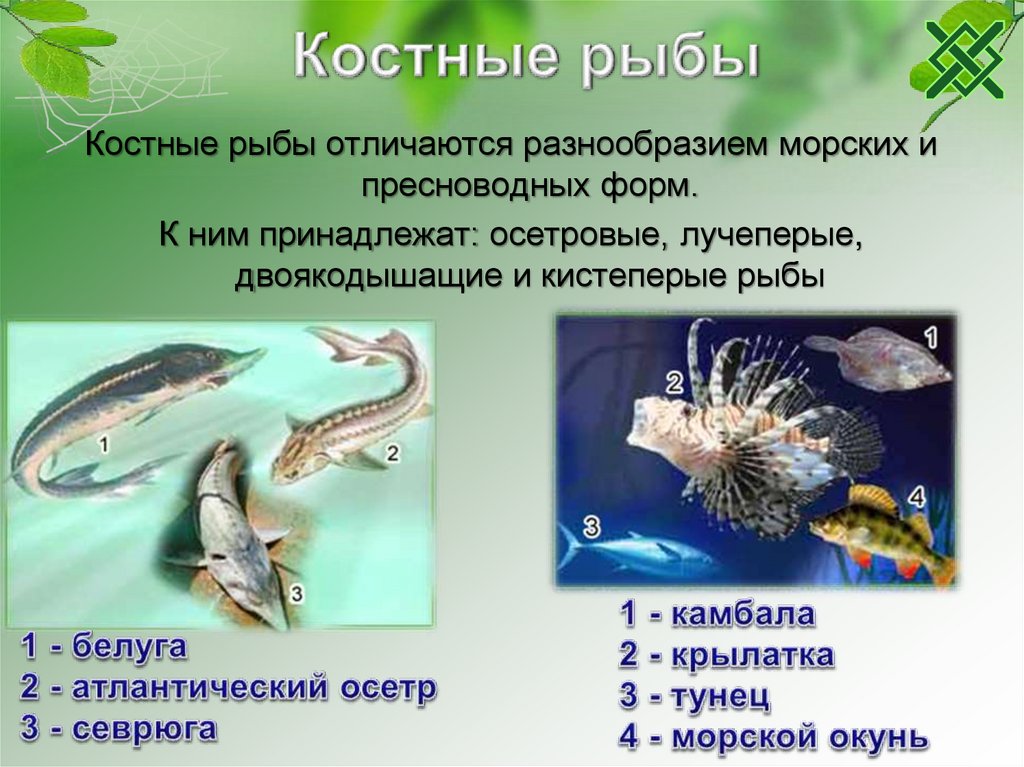 Костные рыбы отличаются разнообразием морских ипресноводных форм.