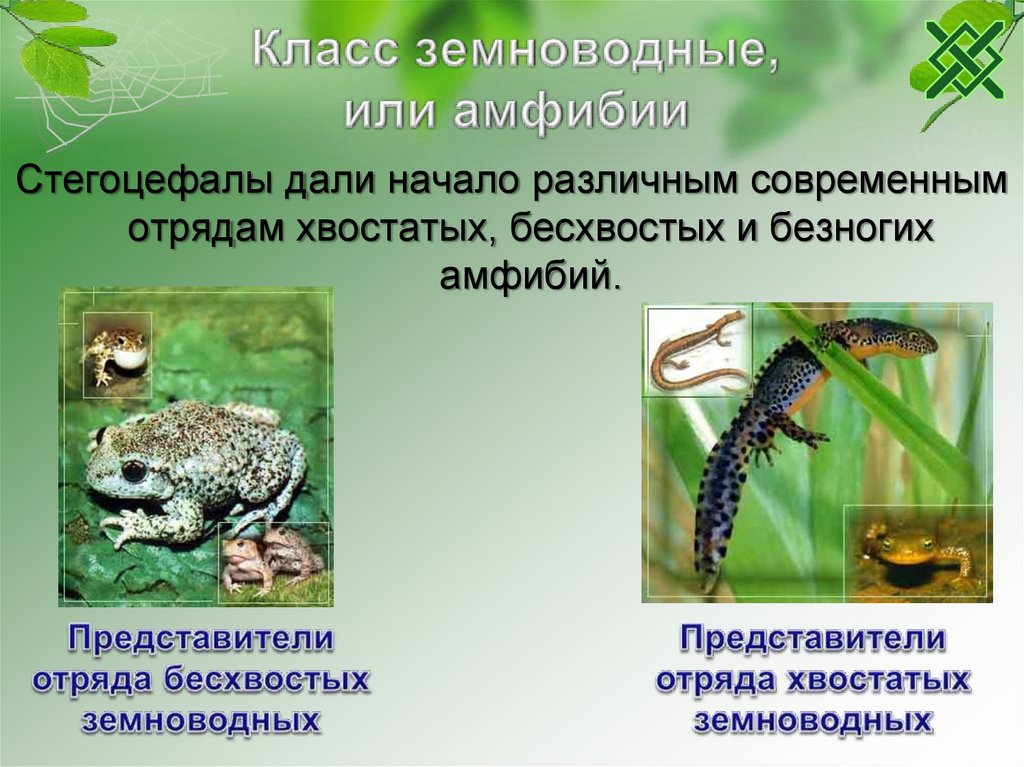 Стегоцефалы дали начало различным современнымотрядам хвостатых, бесхвостых и безногих
