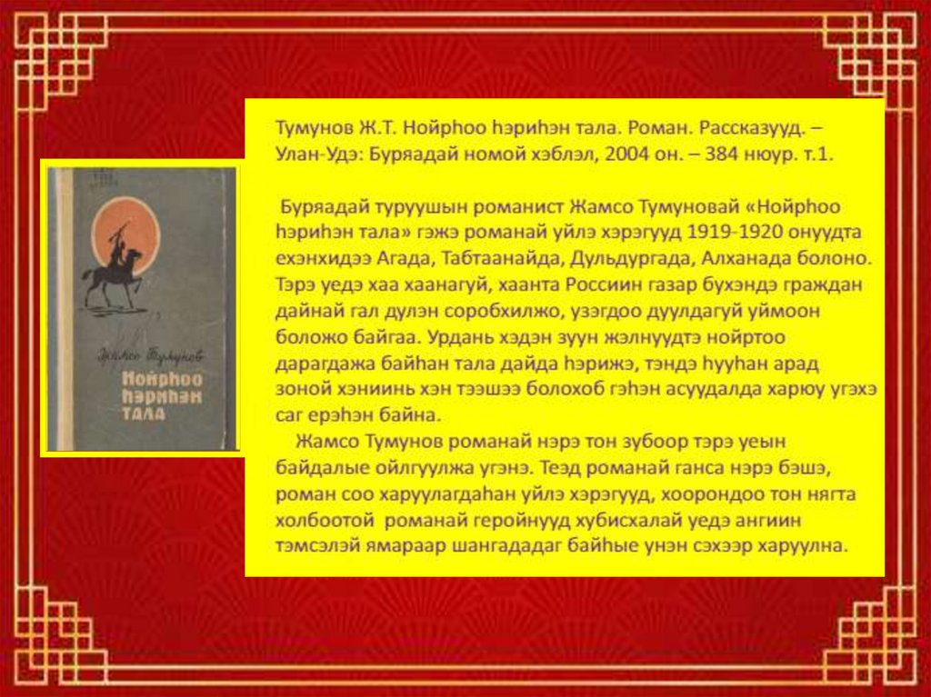 Последний свой роман Жамсо Тумунов «Золотой