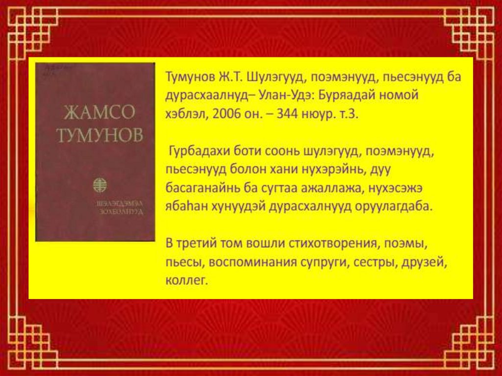 Уран зохёолшо Жамсо Тумунов «Алтан бороо» гэжэ
