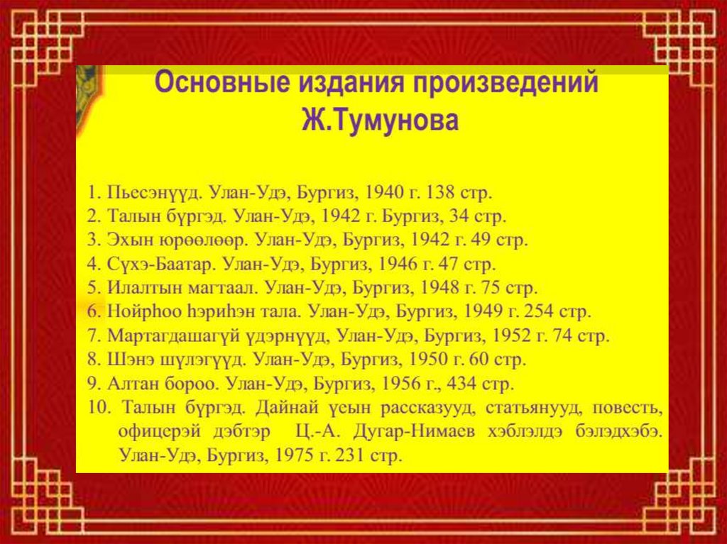 Тумунов Ж.Т. Алтан бороо. Роман. Наранай орохо зүгтээшэ. Повесть. Офицерэй дэбтэр. – Улан-Удэ: