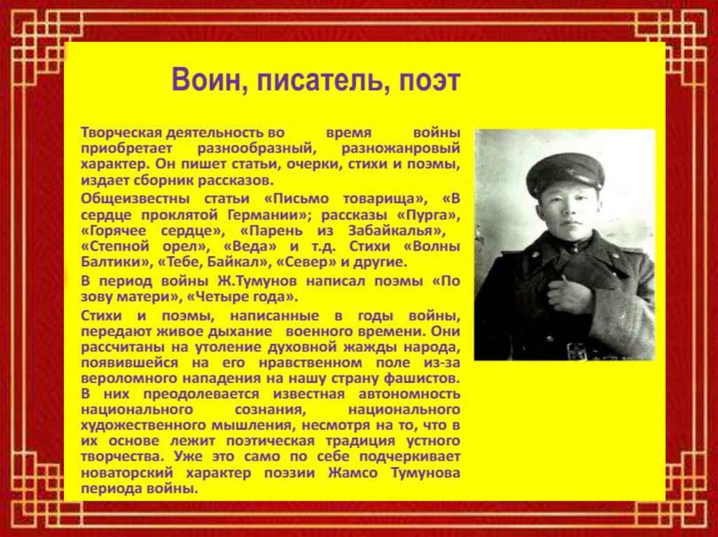 войны и до последних дней жизни. Жамсо Тумунович
