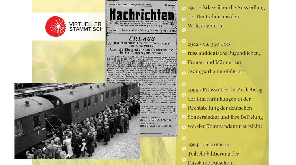 1941 - Erlass über die Aussiedlungder Deutschen aus den