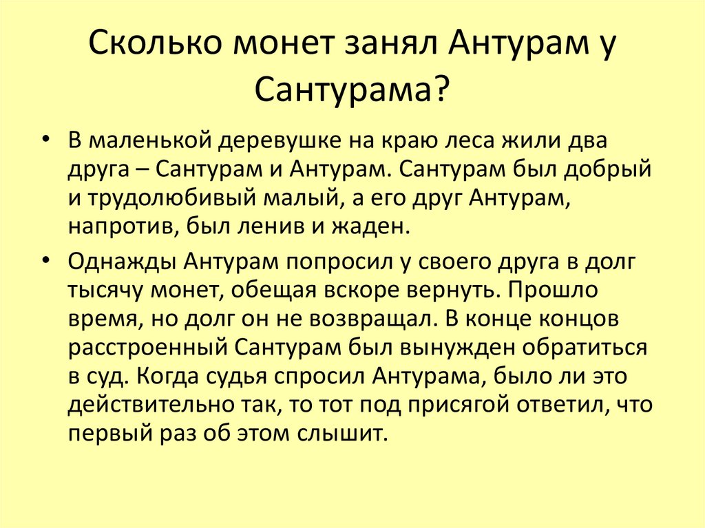 • Однажды Антурам попросил у своего друга в долг