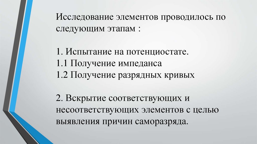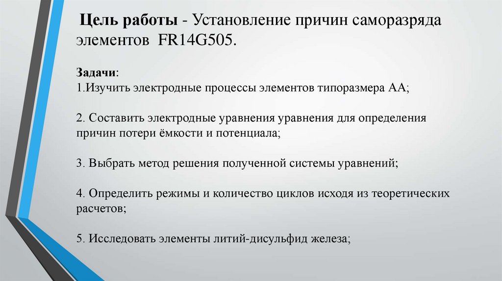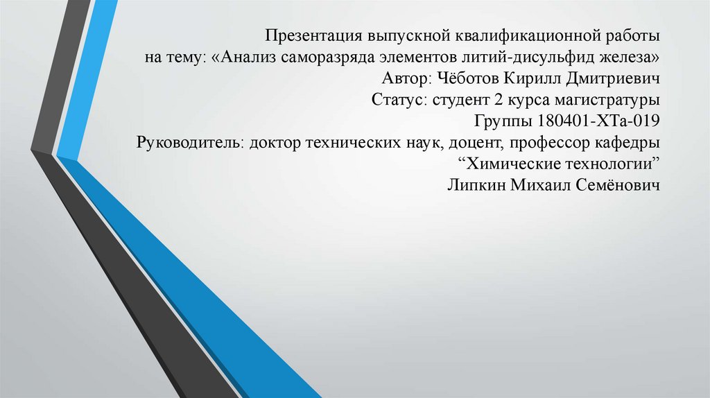 Презентация выпускной квалификационной работына тему: «Анализ саморазряда элементов литий-дисульфид железа»