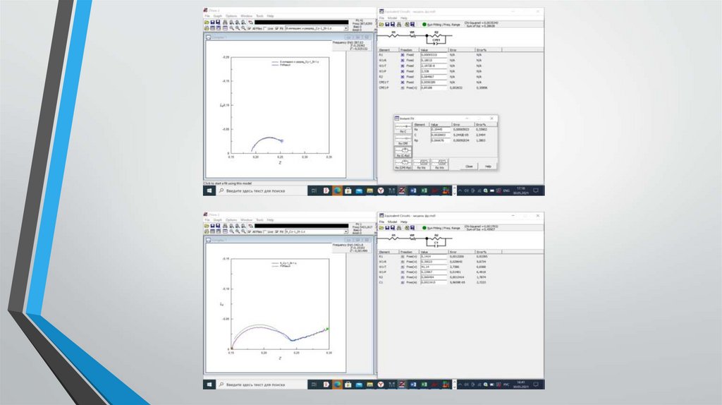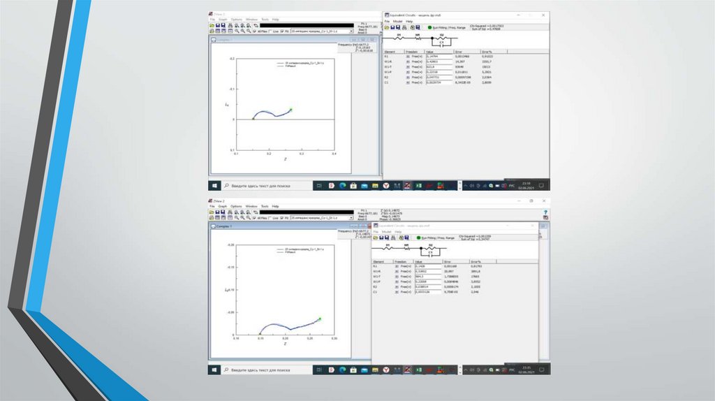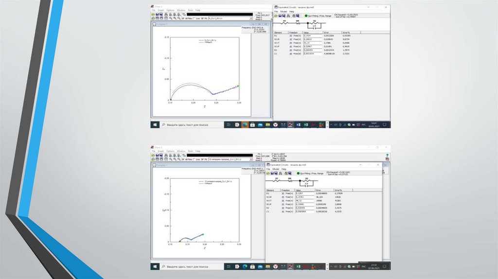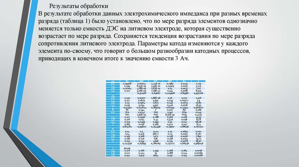 Результаты обработкиВ результате обработки данных электрохимического импеданса при разных временах