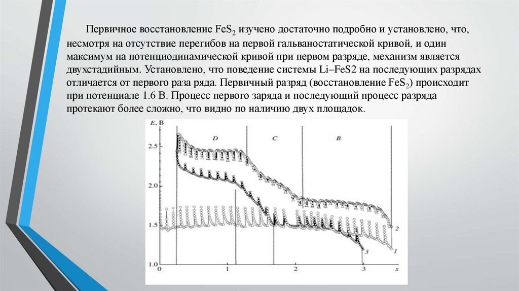 отличается от первого раза ряда. Первичный разряд (восстановление FeS2) происходит