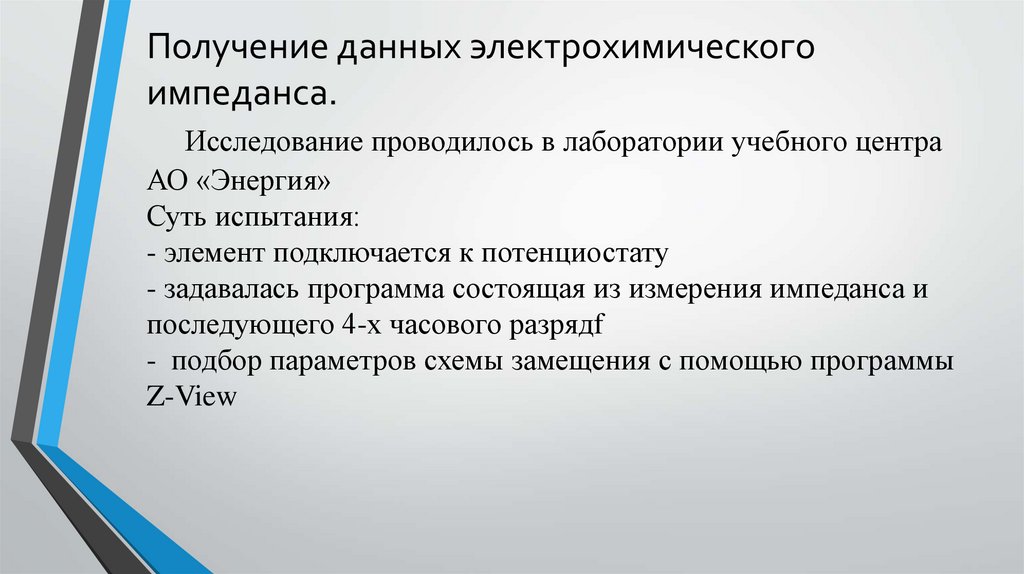 Получение данных электрохимическогоимпеданса.