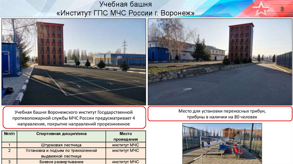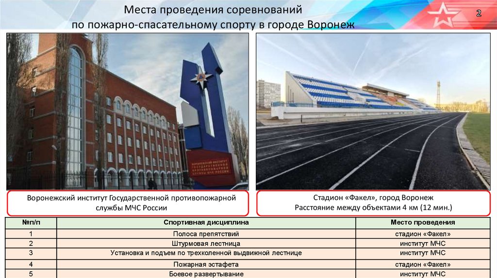 Места проведения соревнованийпо пожарно-спасательному спорту в городе Воронеж