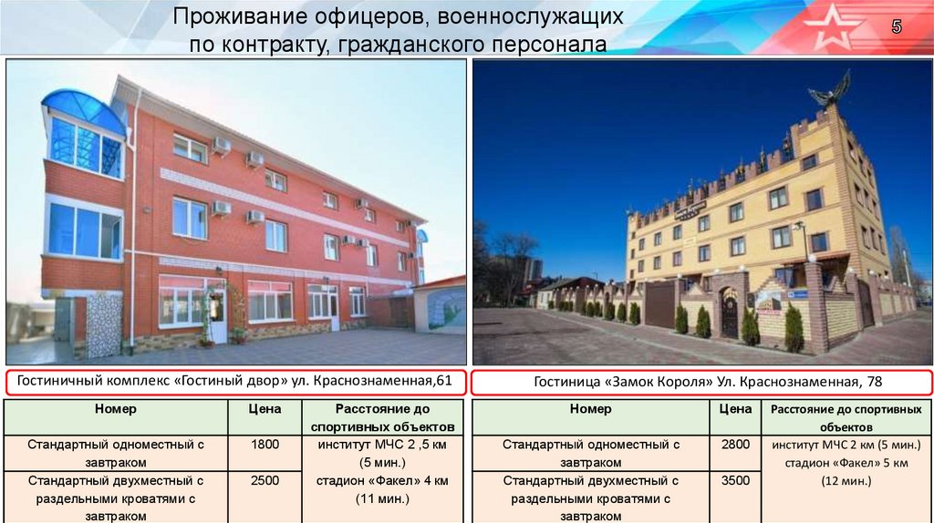 Проживание офицеров, военнослужащихпо контракту, гражданского персонала