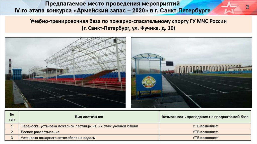Планируемые места проведения конкурса «Армейский запас – 2020» среди подразделений пожарной охраны г. Санкт-Петербурга
