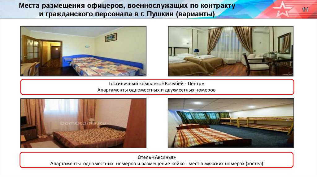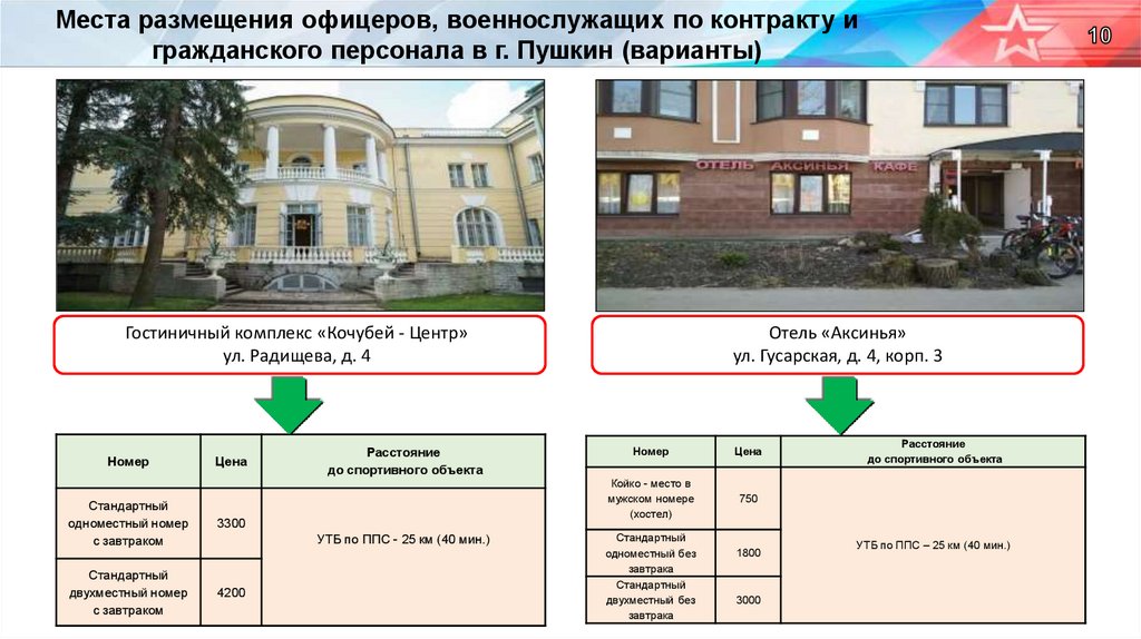 Места размещения офицеров, военнослужащих по контрактуи гражданского персонала в г. Пушкин (варианты)