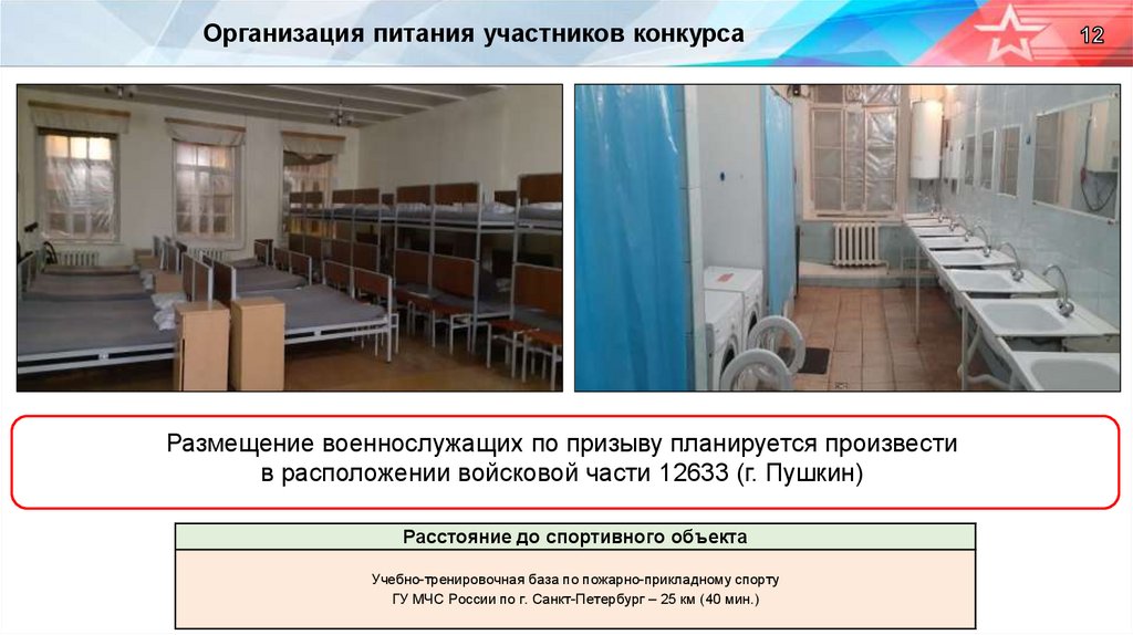 Организация питания участников конкурсаРазмещение военнослужащих по призыву планируется произвести