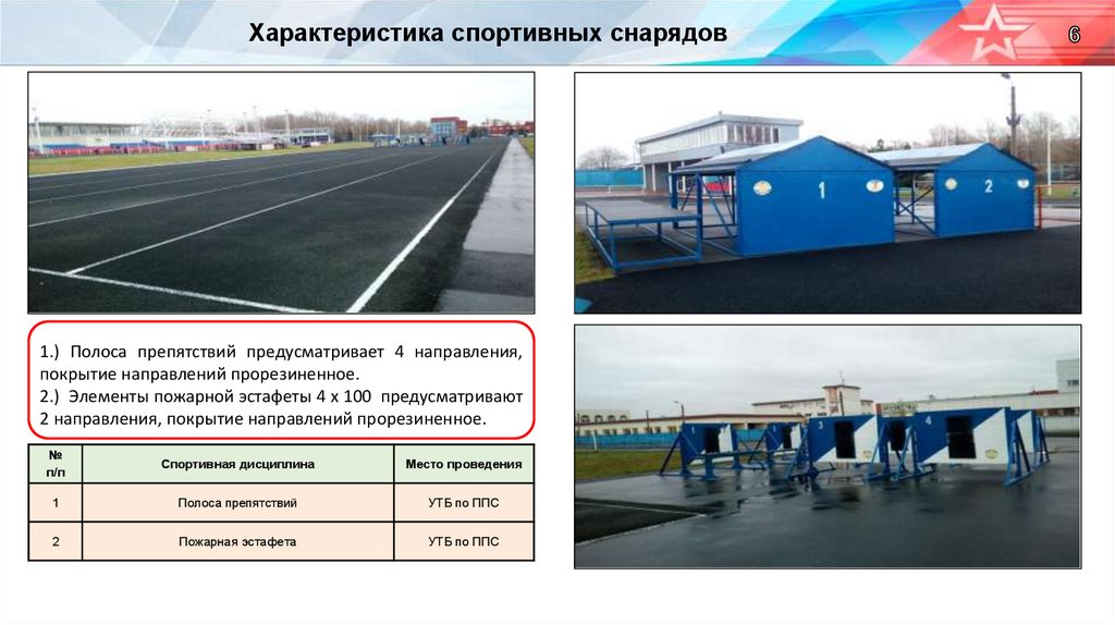 Характеристика спортивных снарядов1.) Полоса препятствий предусматривает 4 направления,