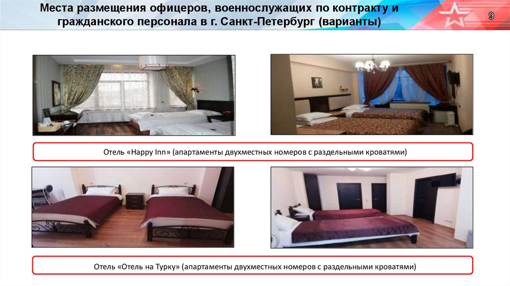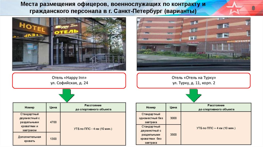 Места размещения офицеров, военнослужащих по контракту игражданского персонала в г. Санкт-Петербург (варианты)