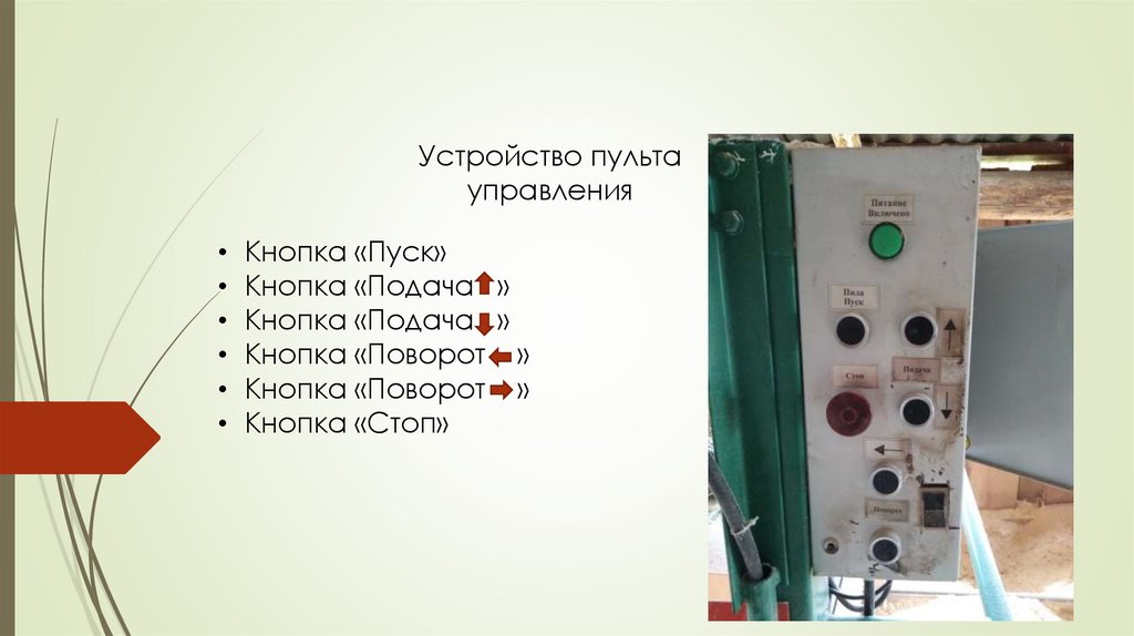 1) Отключение пилорамы от эл. питания;