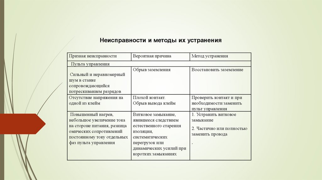 Неисправности и методы их устраненияПризнак неисправности