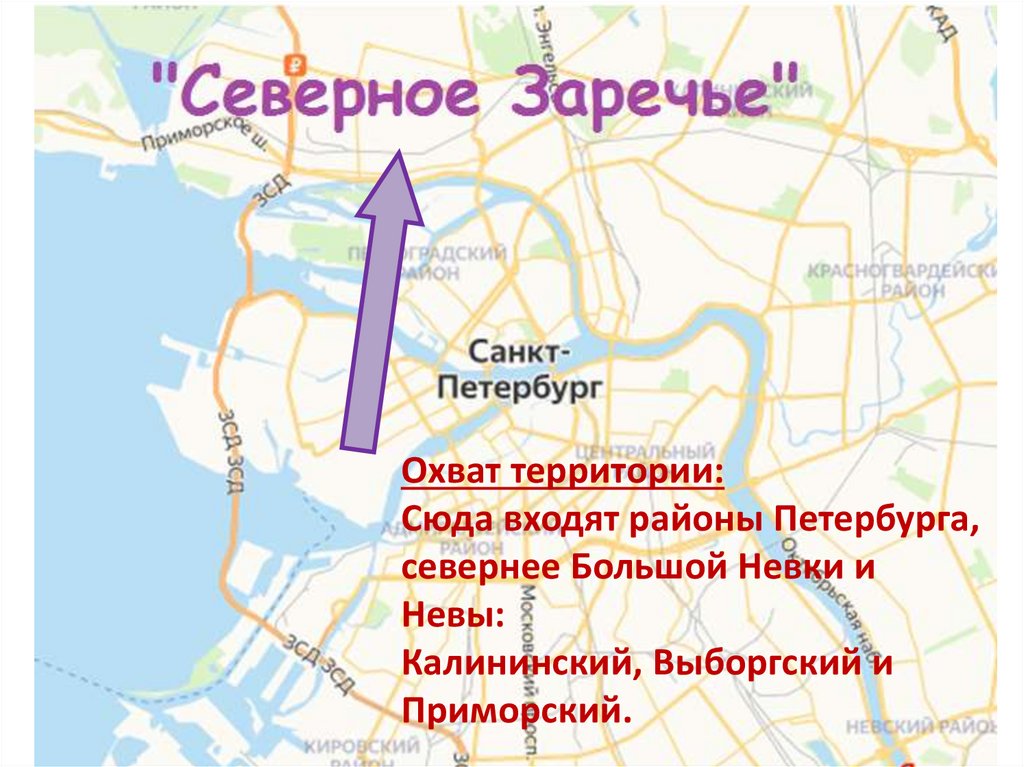 Охват территории:Сюда входят районы Петербурга,