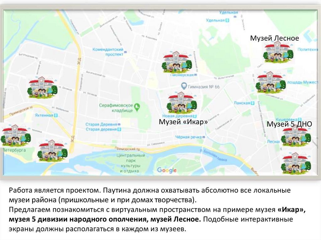 экраны должны располагаться в каждом из музеев.