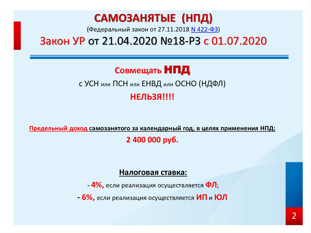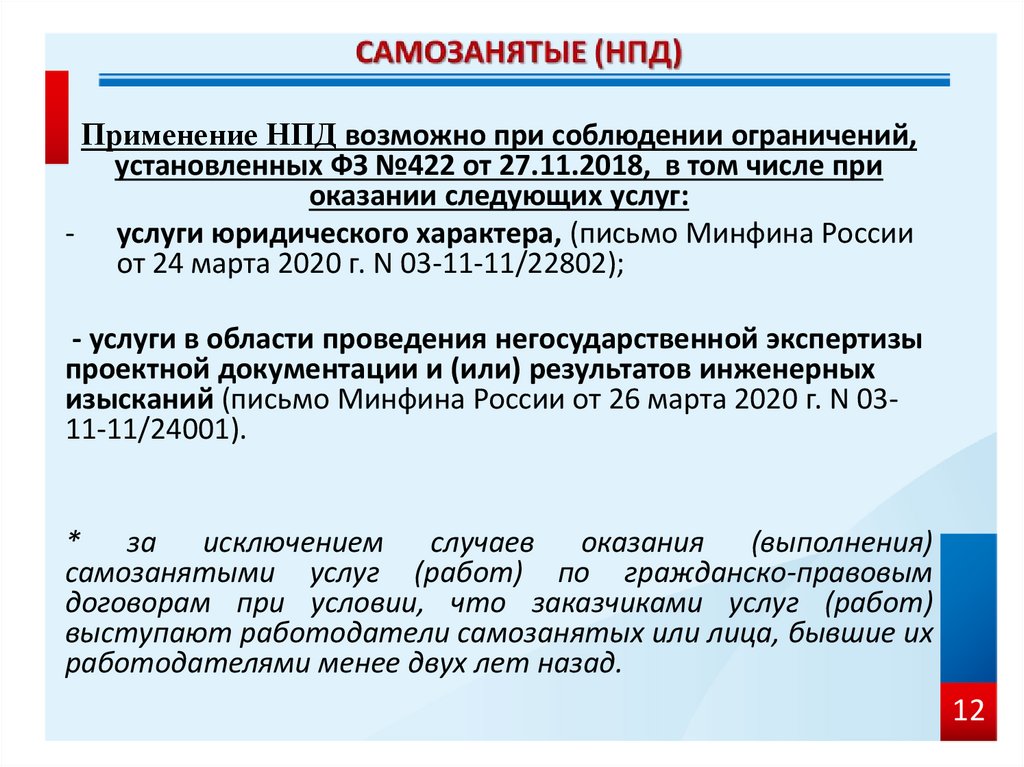 Применение НПД возможно при соблюдении ограничений,установленных ФЗ №422 от 27.11.2018, в том числе при