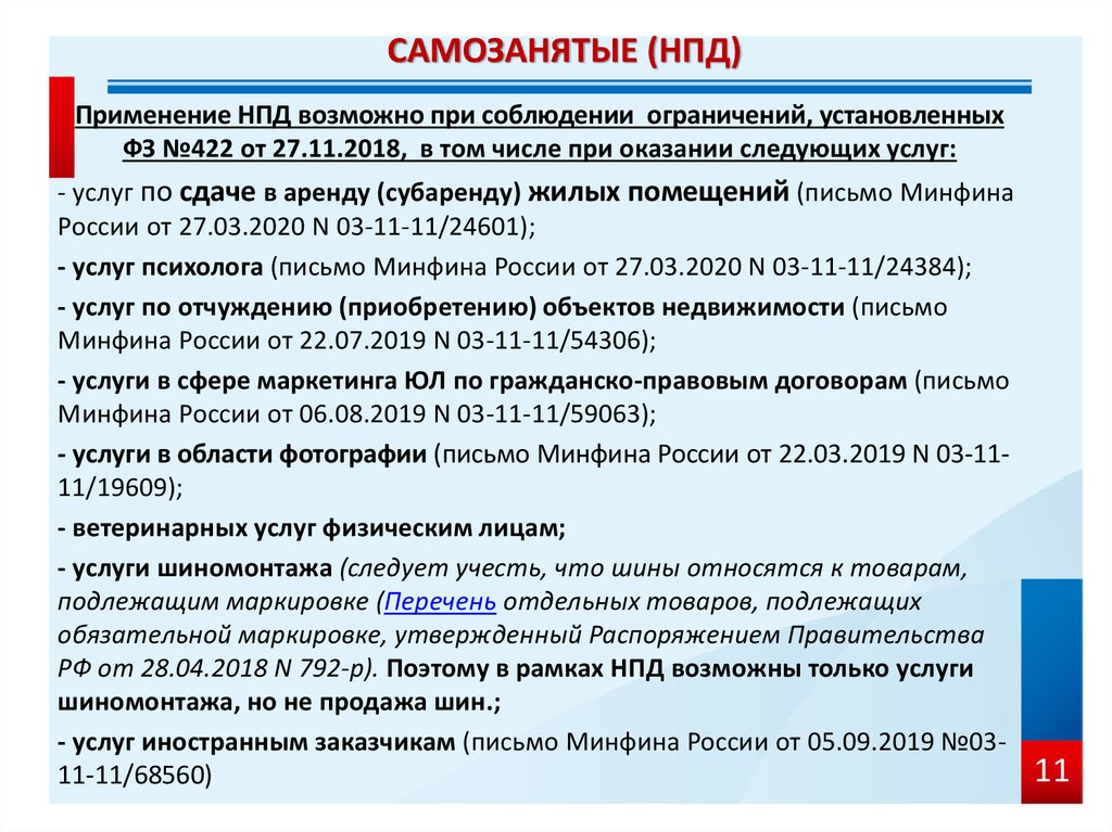 РФ от 28.04.2018 N 792-р). Поэтому в рамках НПД возможны только услуги