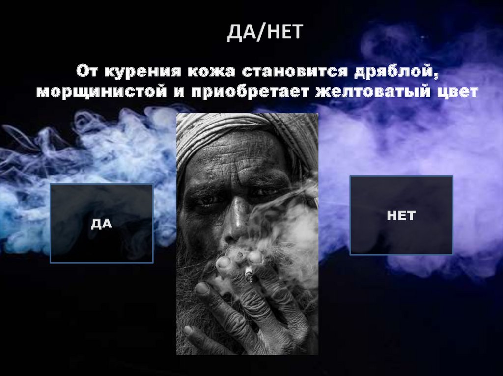От курения кожа становится дряблой,морщинистой и приобретает желтоватый цвет