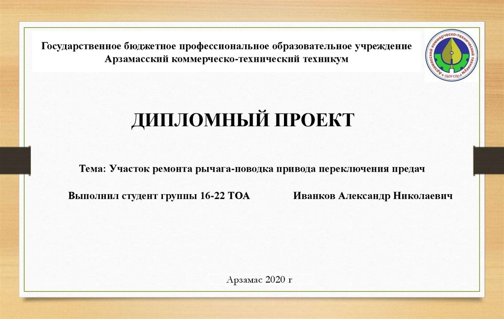 Государственное бюджетное профессиональное образовательное учреждениеАрзамасский коммерческо-технический техникум