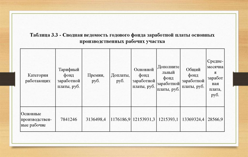 Таблица 3.3 - Сводная ведомость годового фонда заработной платы основныхпроизводственных рабочих участка