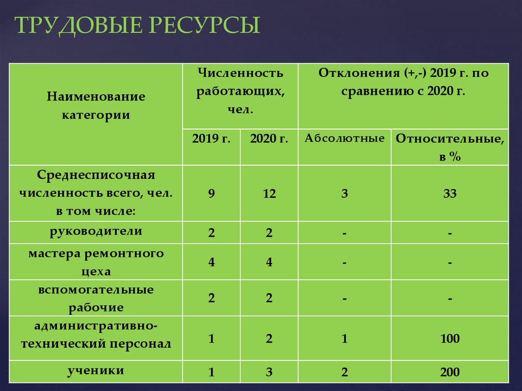 ТРУДОВЫЕ РЕСУРСЫНаименование