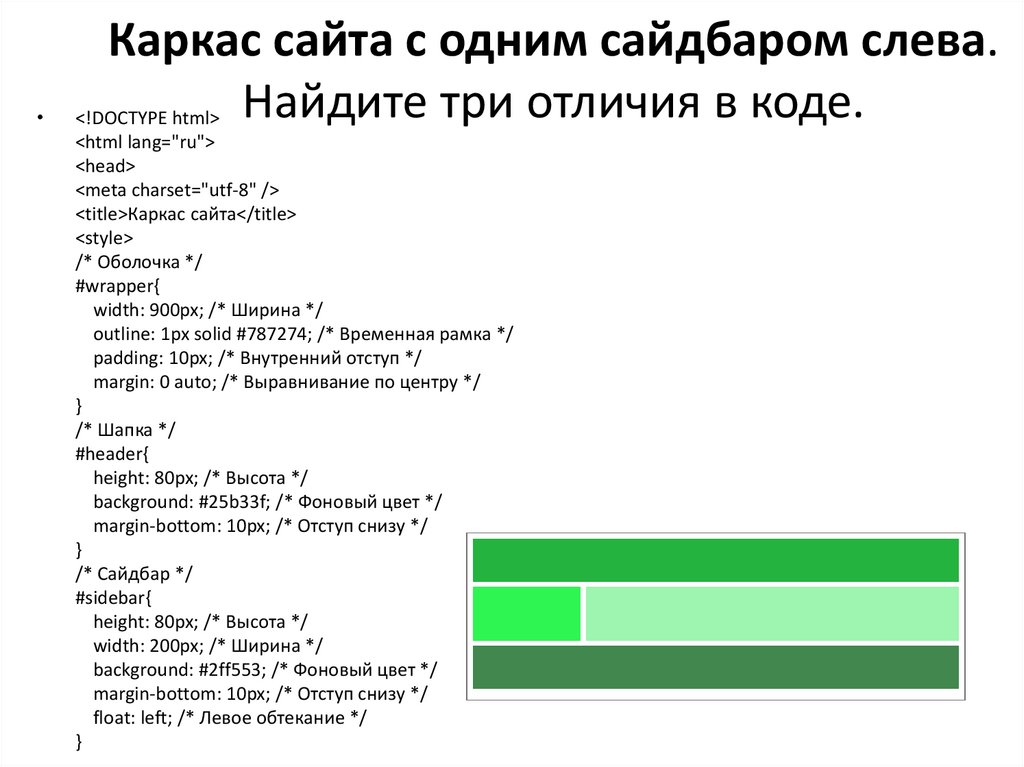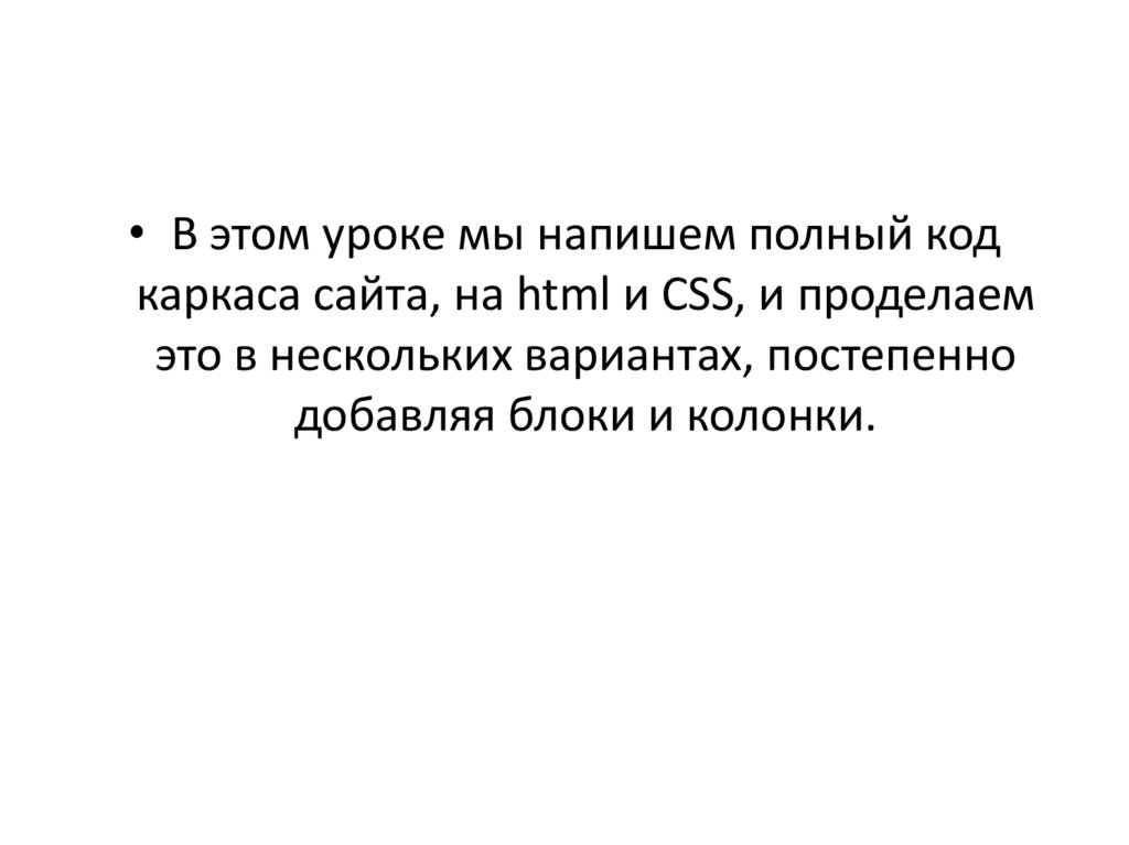 • В этом уроке мы напишем полный кодкаркаса сайта, на html и СSS, и проделаем