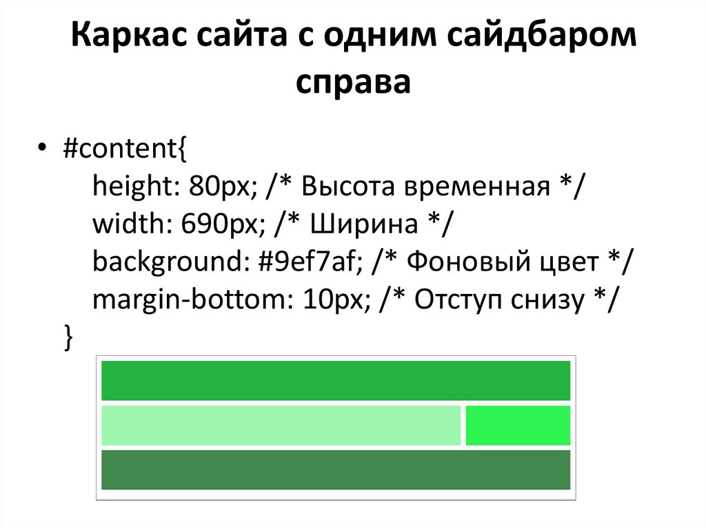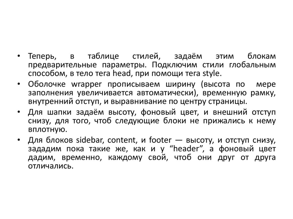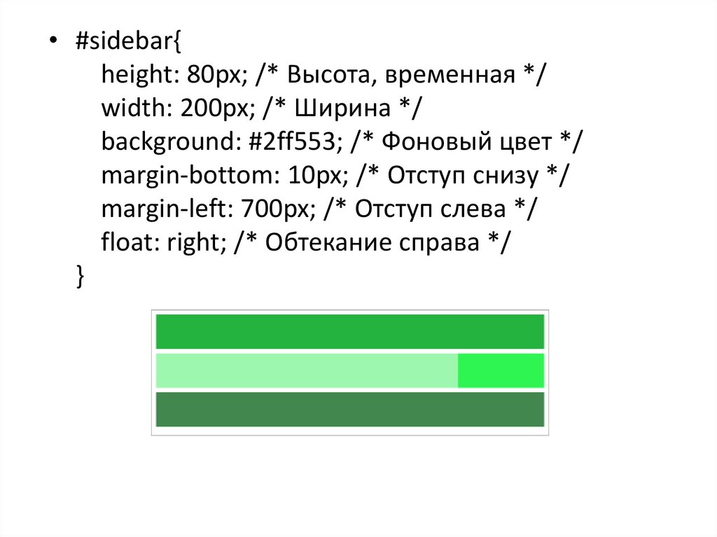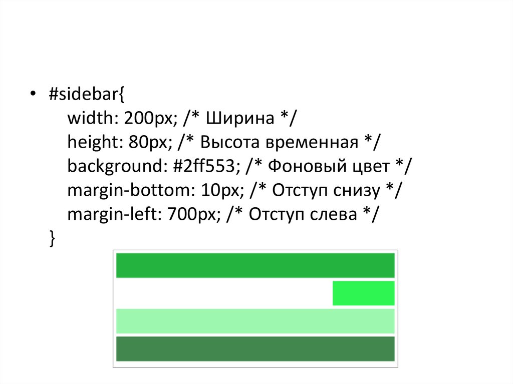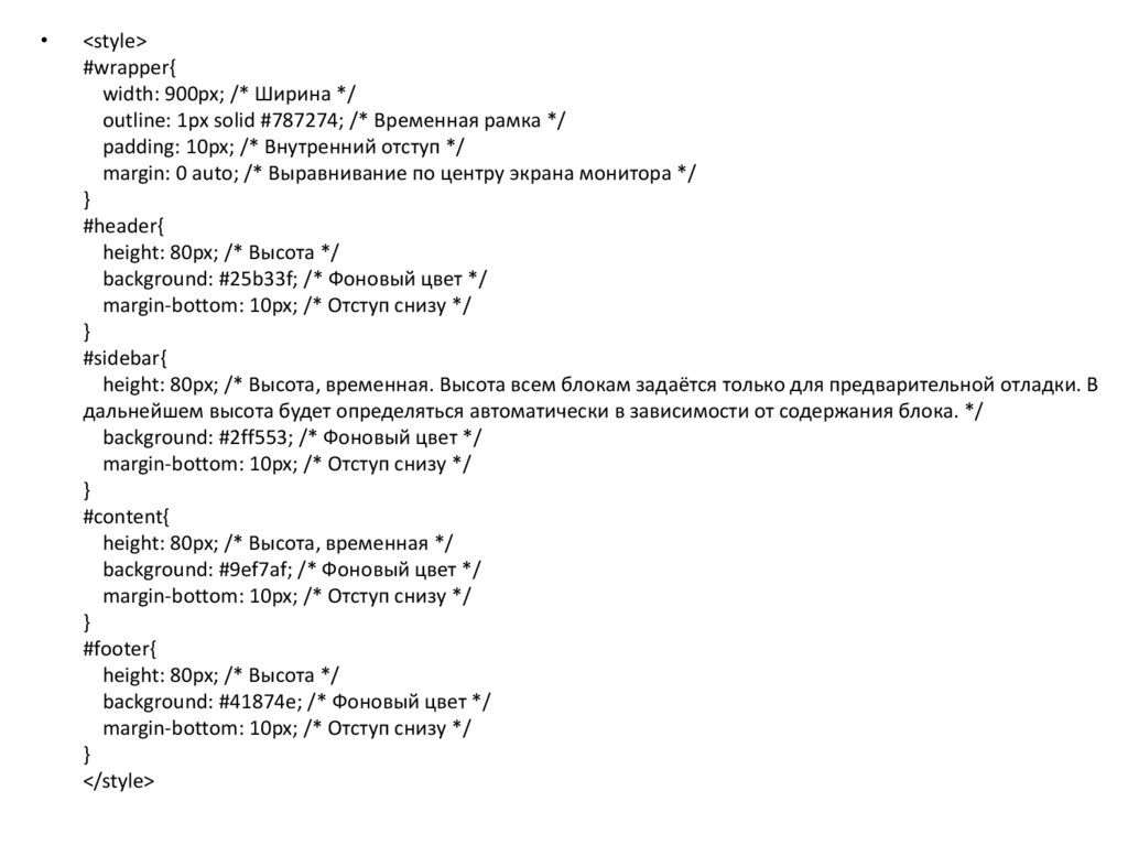 • Для блоков sidebar, content, и footer — высоту, и отступ снизу,