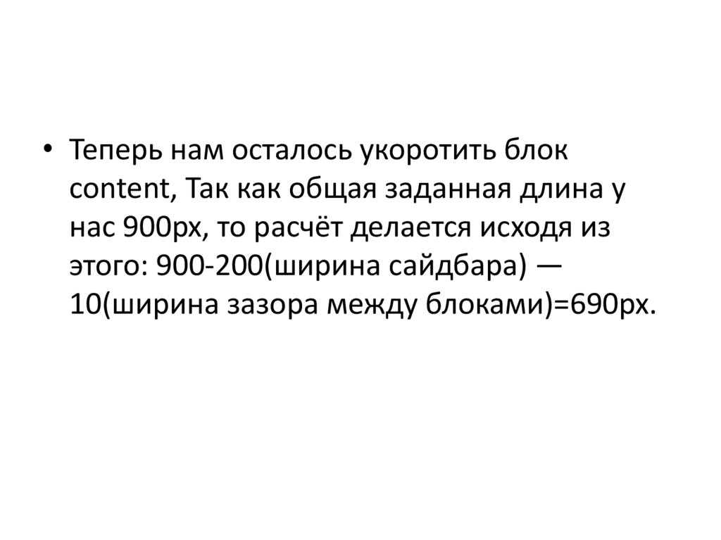 • Теперь нам осталось укоротить блокcontent, Так как общая заданная длина у