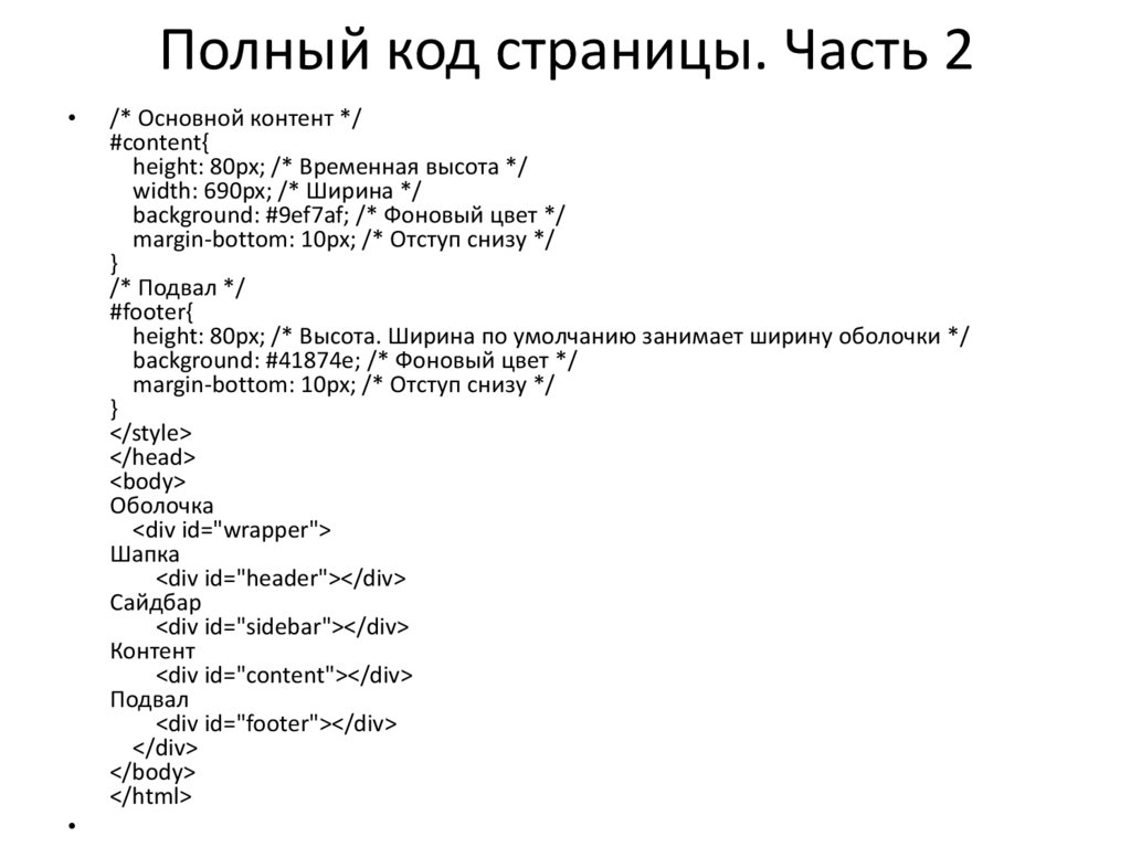 1. <div id=”wrapper”> — wrapper (оболочка), в нём
