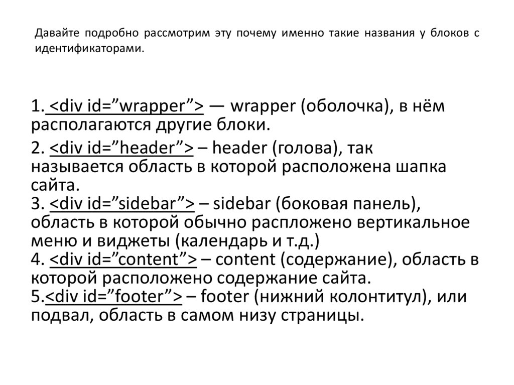 Давайте подробно рассмотрим эту почему именно такие названия у блоков сидентификаторами.