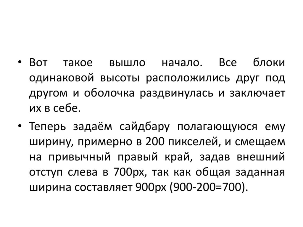 • Вот такое вышло начало. Все блокиодинаковой высоты расположились друг под